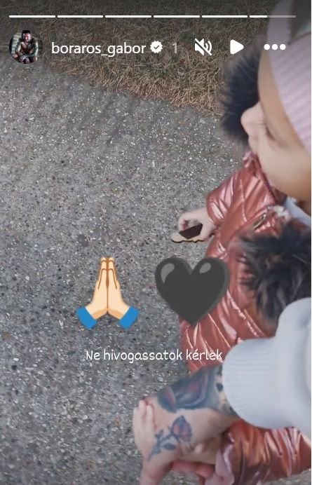 A történteket Boráros Gábor is megerősítette egy közösségi oldalon közzétett, 24 órán át elérhető bejegyzésben. Az Instagram-történetben egy meghitt pillanatot osztott meg: kislányával kézen fogva sétálva látható a fotón. A képhez mindössze egy fekete szívet és egy rövid, de sokatmondó üzenetet fűzött, amelyben arra kérte az embereket, hogy ebben a nehéz időszakban ne keressék őt.