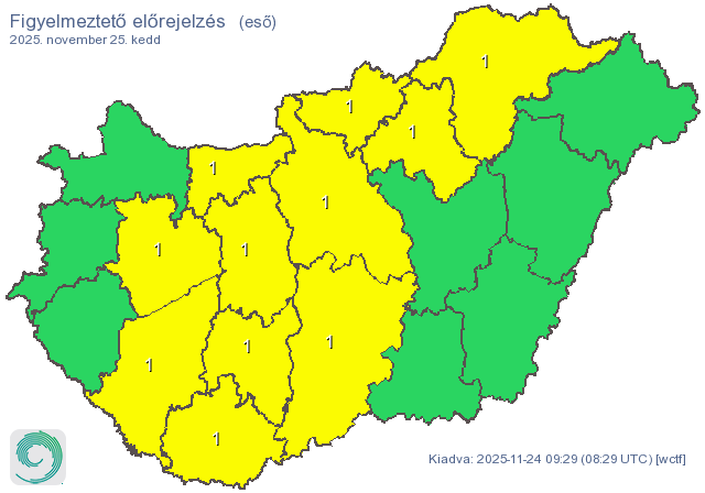 A nap folyamán fokozatosan vastagszik a felhőzet, estére szinte teljesen borult idő várható. Az Északi-középhegység térsége kaphatja a legtöbb csapadékot, ahol akár 20 milliméternél is több eső hullhat. A határ menti területeken a csapadék kezdetben havazás formájában érkezhet, majd a délutáni–esti órákban ónos esőbe vált át, ami különösen veszélyes, tükörjég-szerű útviszonyokat eredményezhet.