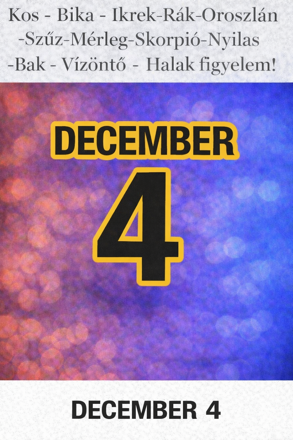Január 4-e a megkönnyebbülés és az újrakezdés napja lehet. Egy régóta húzódó ügy végre lezárulhat, ami nagy terhet vesz le rólad. Munka és anyagiak terén stabil, hosszú távú lehetőségek körvonalazódnak, amelyek biztonságot adnak a következő időszakra.