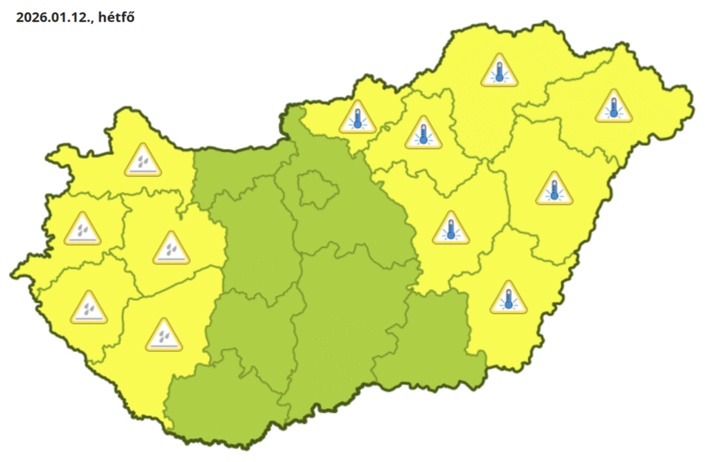 Jelentős időjárási kockázatokkal indul a hét második fele: ónos eső és extrém hideg miatt adott ki figyelmeztetéseket a HungaroMet Magyarország nagy részére. Hétfő estétől elsősorban a Dunántúlon válhat veszélyessé a közlekedés az ónos csapadék miatt, miközben az ország keleti felében a derült, szélcsendes idő következtében rendkívül alacsony hőmérsékletekre kell felkészülni írja a Kiderült.hu