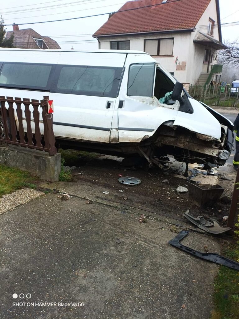 Árokba hajtott, majd kerítésnek ütközött egy kisbusz a 82-es főúton-Fotó